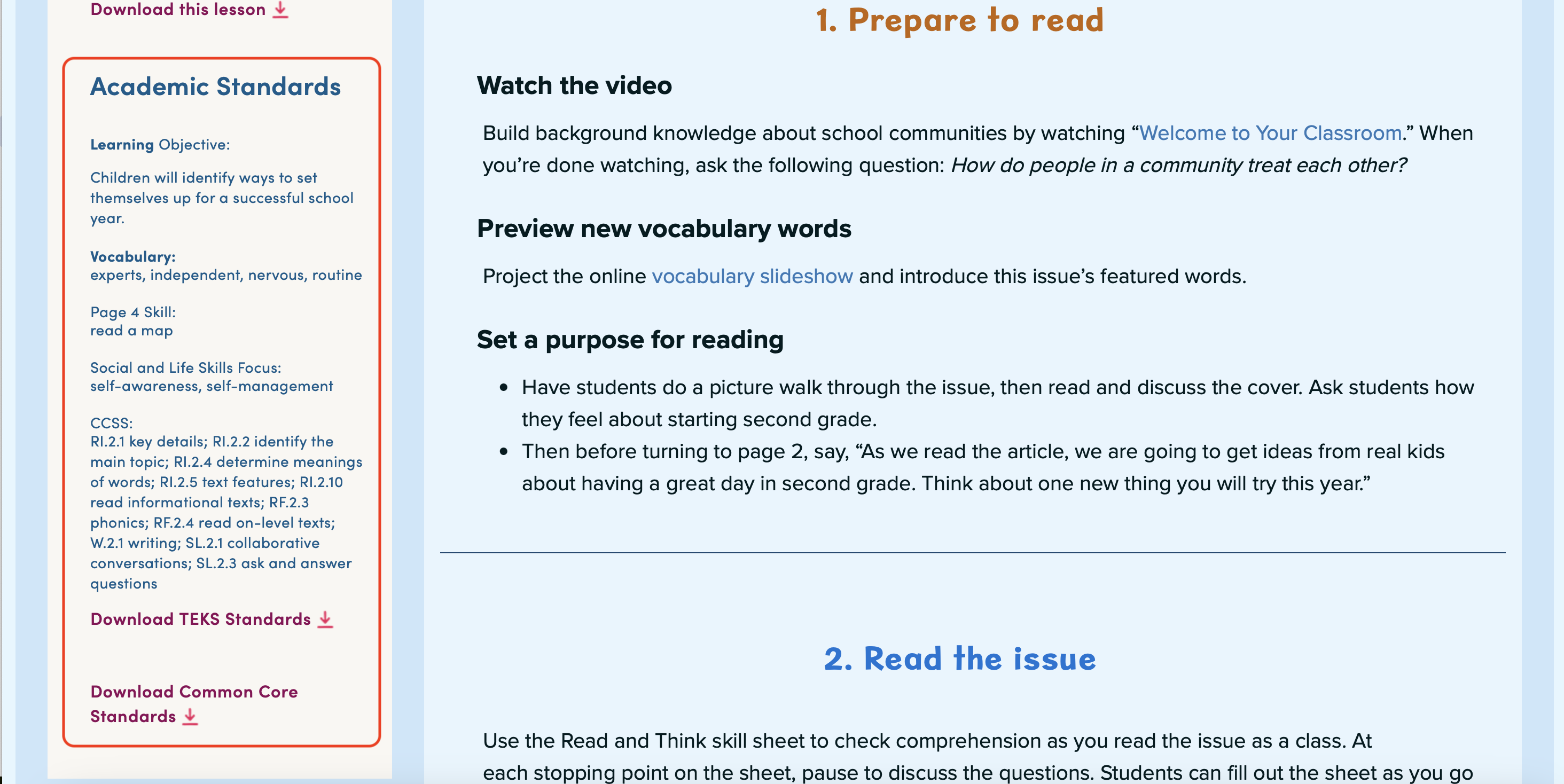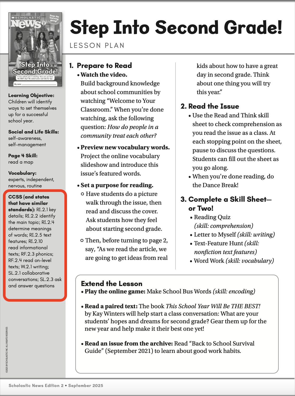 You can use Scholastic News 2 to help cover many of the standards you need to teach.
