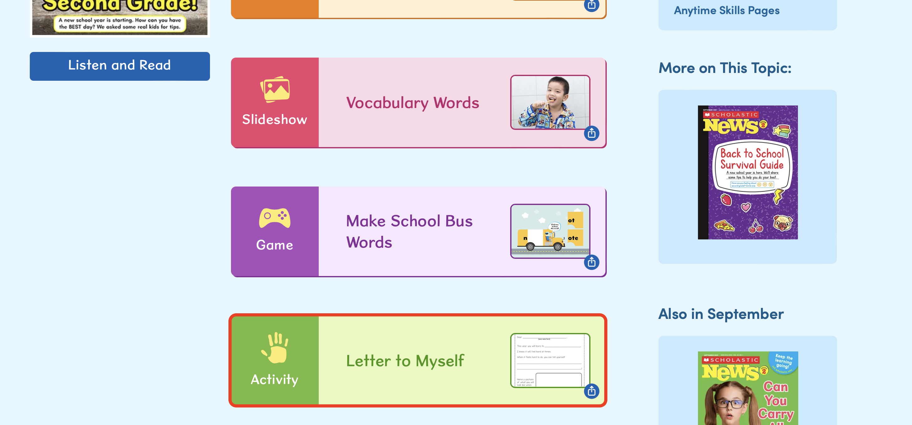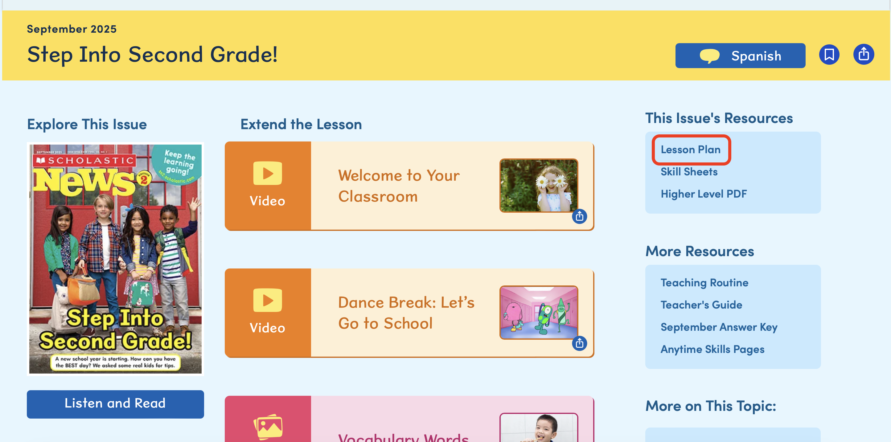 Inside, you'll find information on each issue's vocabulary words, videos, games, skill sheets, and more!