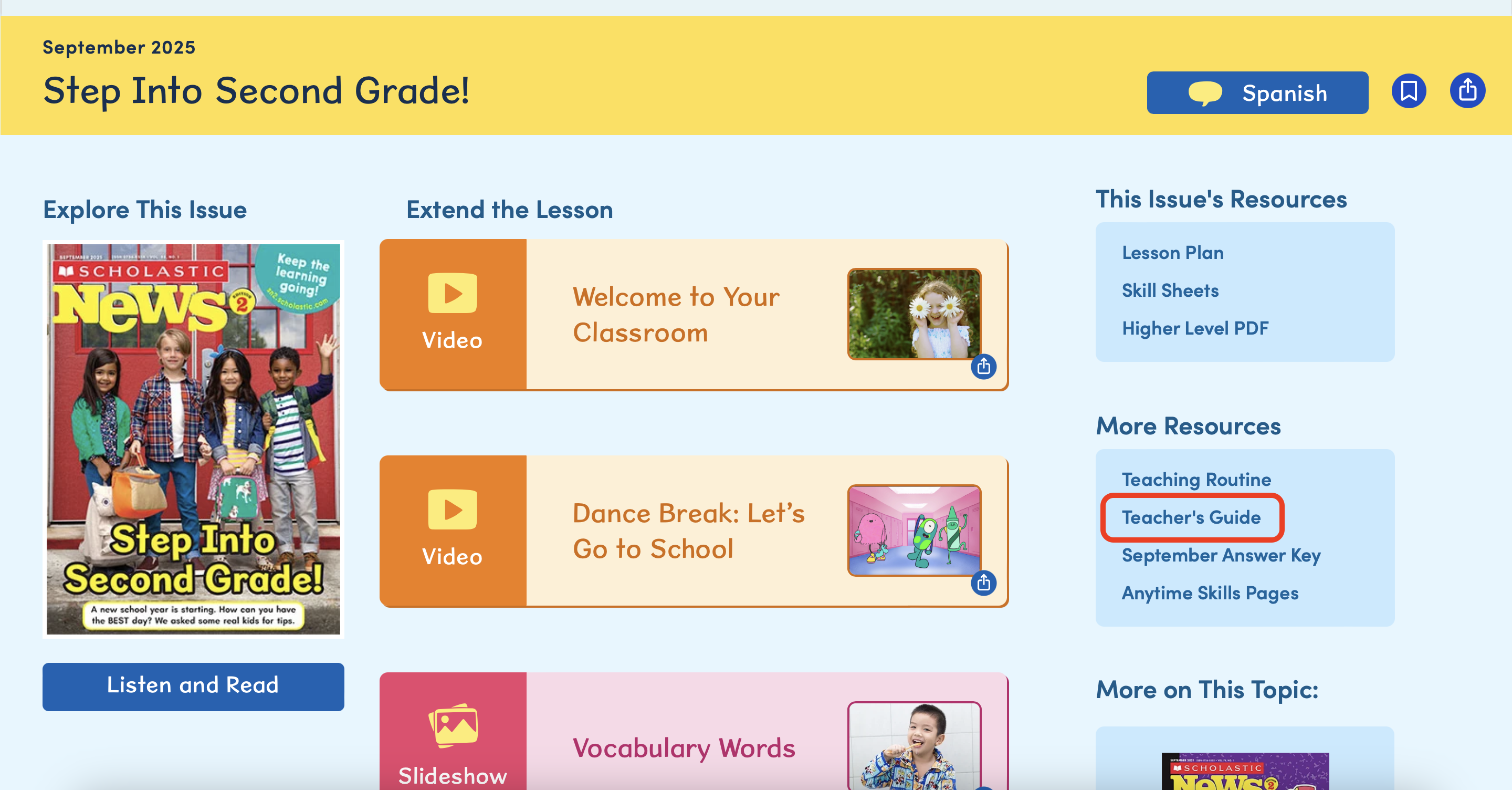 The learning doesn’t stop when you finish reading your issue of SN2! The Teacher’s Guide is a complete skill-building package for every issue, with easy-to-follow guidance on our multimedia resources and each issues' content to extend students’ learning. There is a hard copy of the Teacher’s Guide included with every monthly bundle, but you also can access the Teacher’s Guide online!