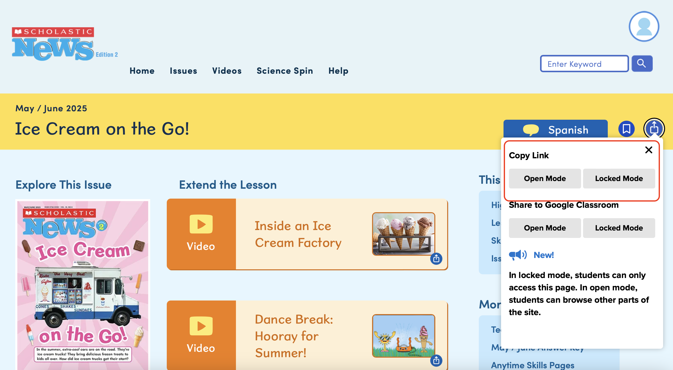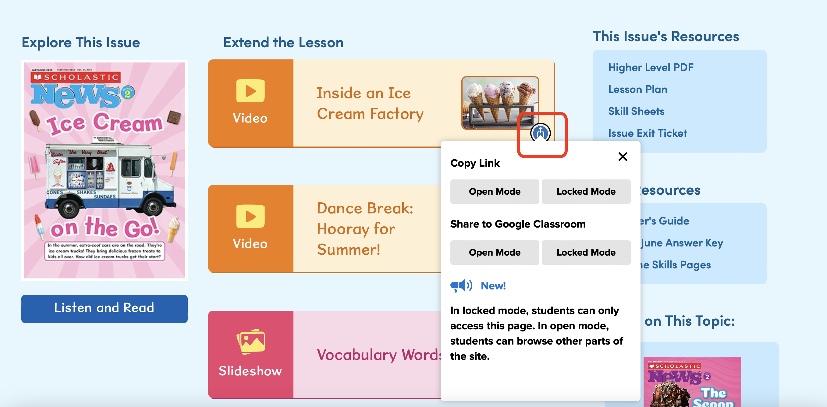 Locked Mode only allows students to access the content you shared. Some teachers use Locked Mode when they don't want students to look ahead to future issues that might not have been introduced to the class yet. Other teachers use it to help students focus on one thing at a time.